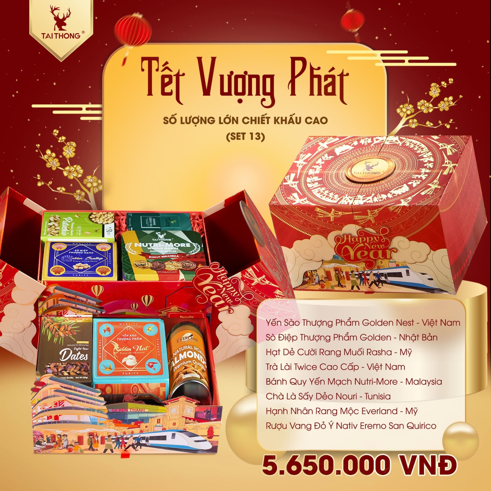 • Hộp quà Tết 2025: VP 13 bao gồm: Golden Nest, Golden, Rasha, Twice, Nutri-More, Nouri, Everland, Nativ Eremo San Quirico