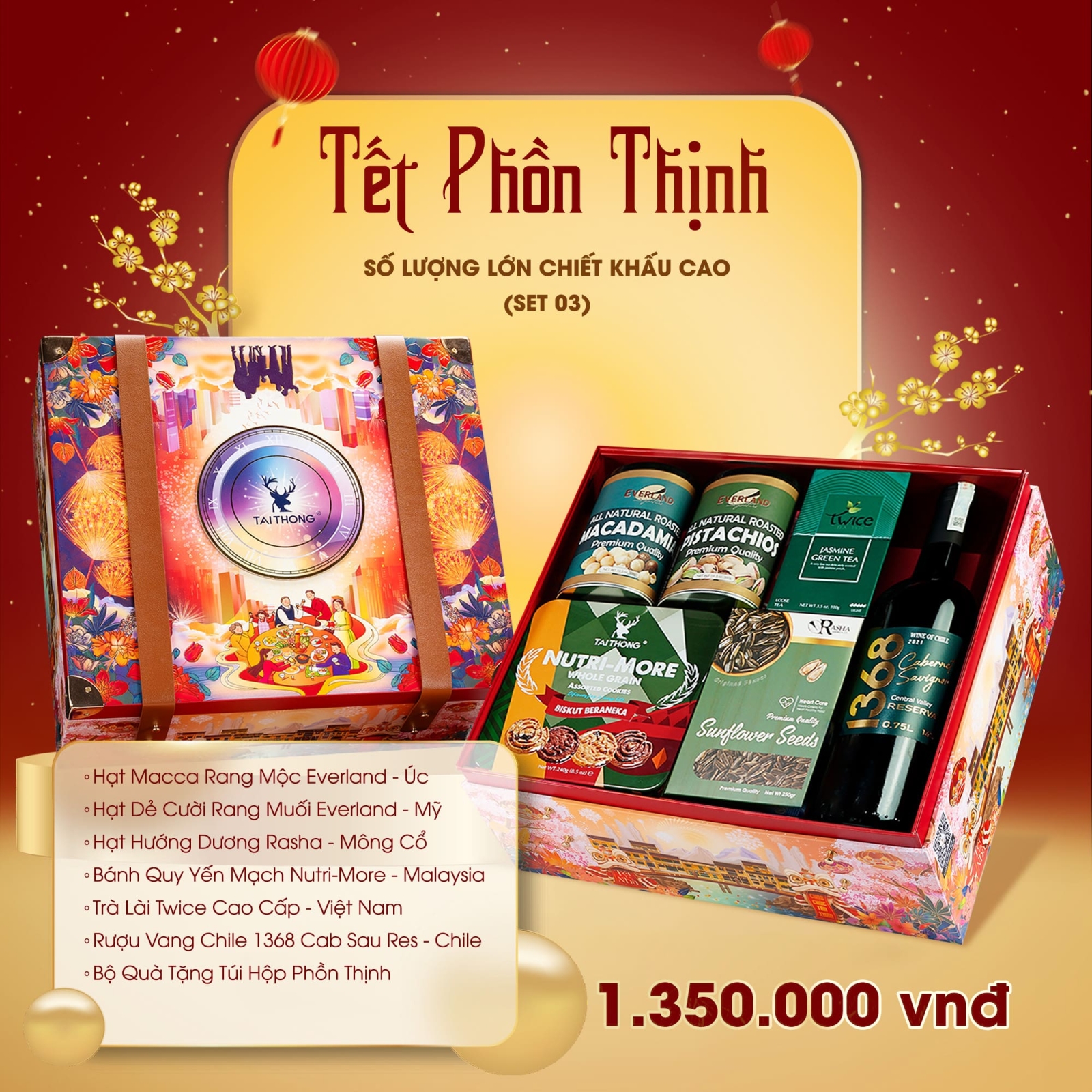 • Hộp quà Tết 2025: PT 03 bao gồm Everland, Rasha, Nutri-More, Twice, 1368 Cab Sau Res