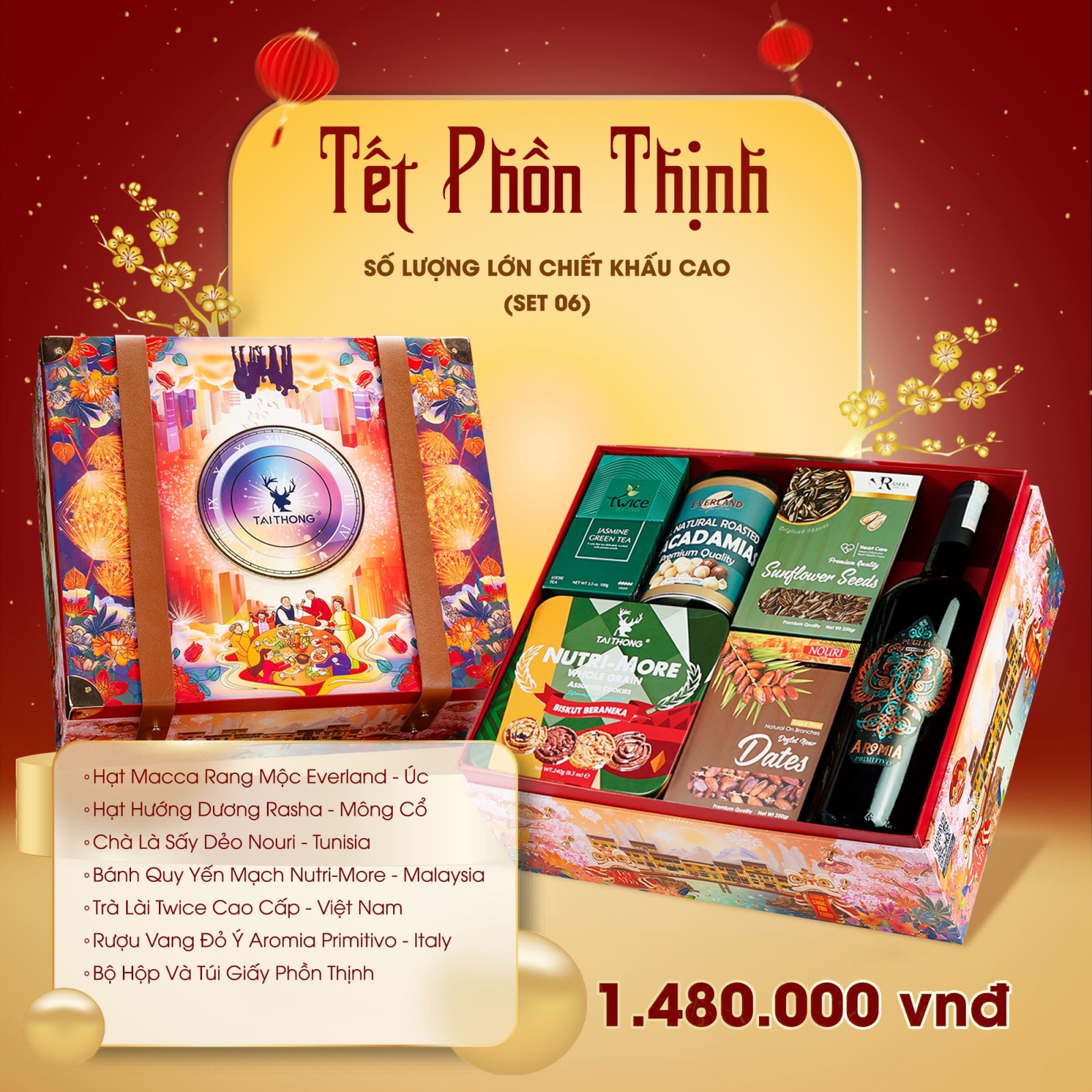 • Hộp quà Tết 2025: Phồn Thịnh 04 bao gồm Everland, Rasha, Nouri, Nutri-More, Twice, Aromia Primitivo